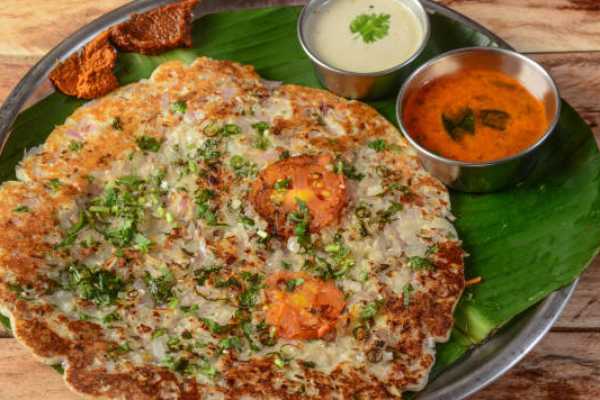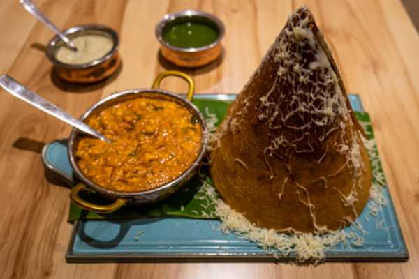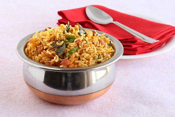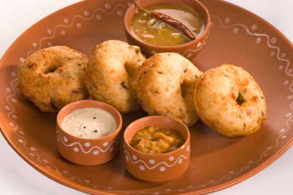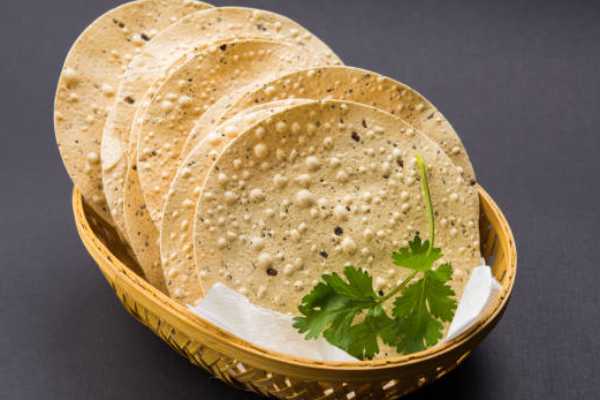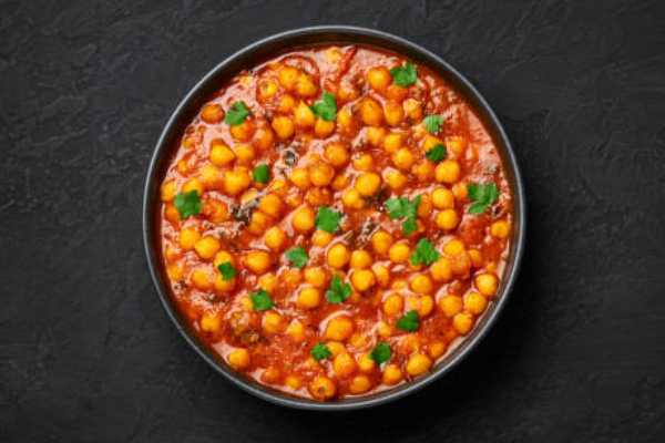 Enriched wheat deep fried puffed bread served with spicy chick peas curry.