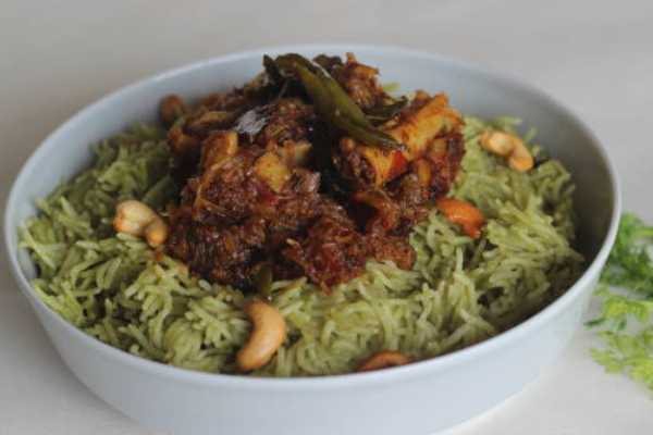 Chicken cooked in mint and coriander sauce Flavor with Curry Leaves