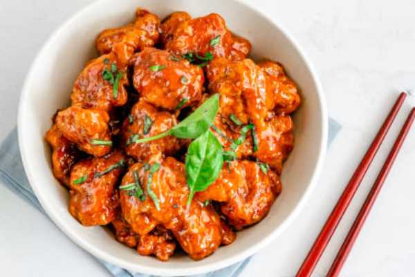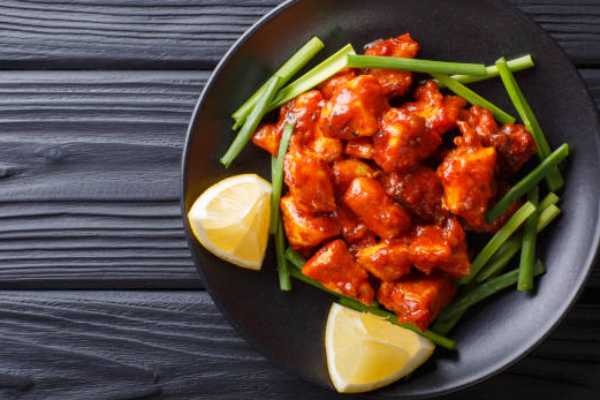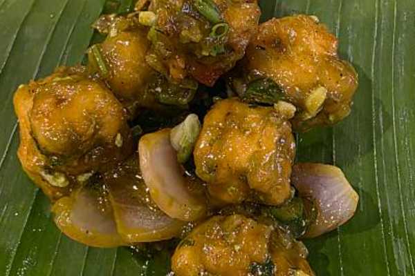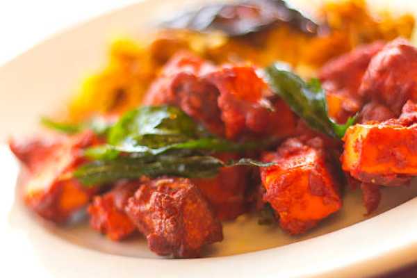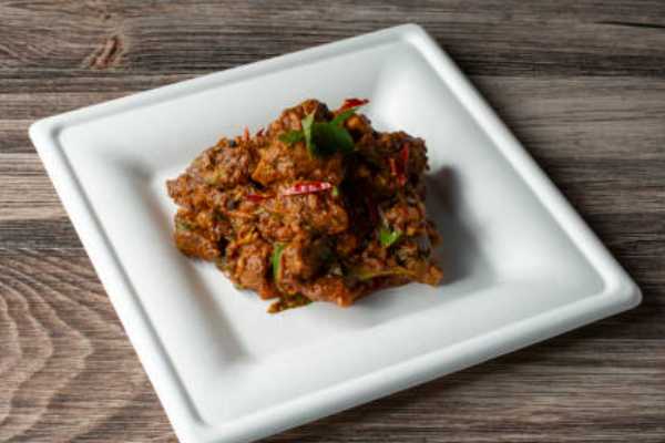 Boneless Chicken cooked with mango sauce, coconut and curry Leaves