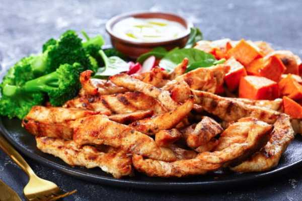 Long slices of chicken wok tossed with onion, garlic, yogurt, peppers and spices