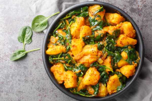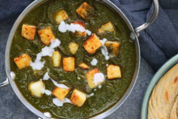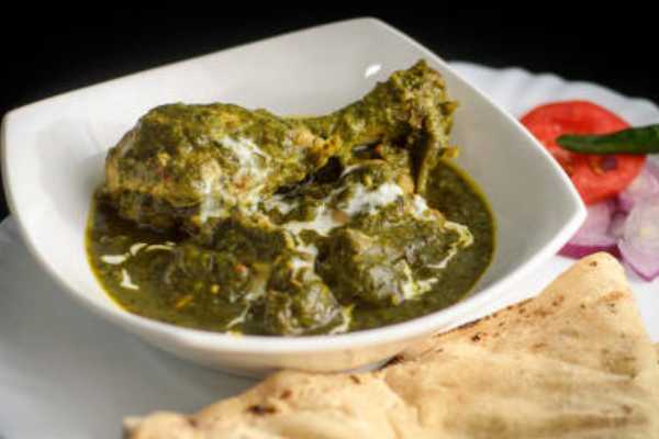 Lamb cooked with spinach cream and sauteed with ginger, garlic