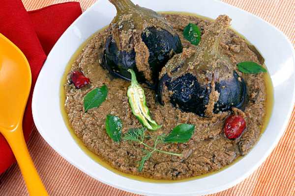 Indian Egg Plant deep fried, and cooked with Peanut sauce