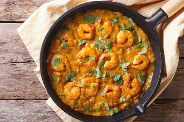 Jumbo shrimp cooked in creamy tikka masala and tomato gravy