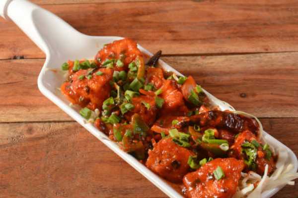 Jumbo shrimp cooked with onion, bell pepper, tomato with semi gravy
