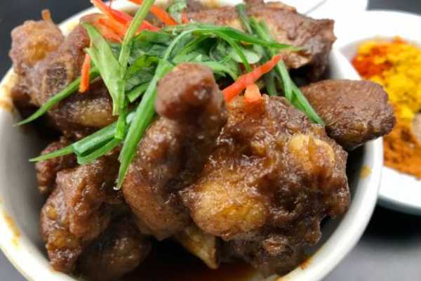 Chicken curry cooked with rosella leaves and finished with HB & more special spices