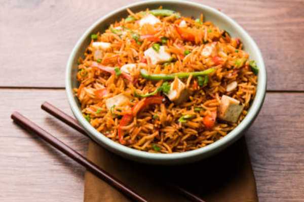 Indo-chinese cuisine fried rice that is hot & spicy with bursting flavors of ginger, garlic, soy sauce& red chilli paste, cooked with house made vegetable balls, finely chopped cabbage & vegetables