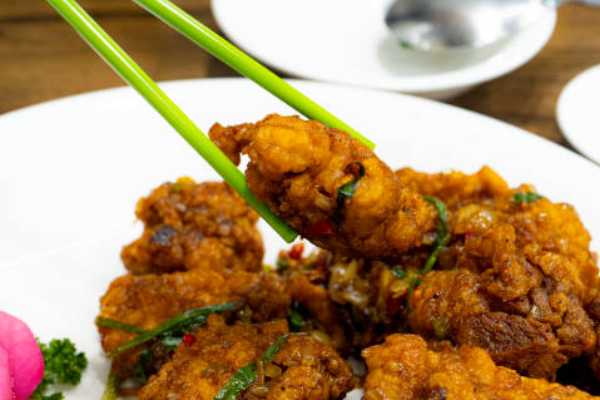 From the pepper capital of the world Guntur; fried house made Indian Vegetable Dumplings tossed in sauce made from special guntur red chilies, herbs & spices & exquisitely cooked to awaken your taste buds