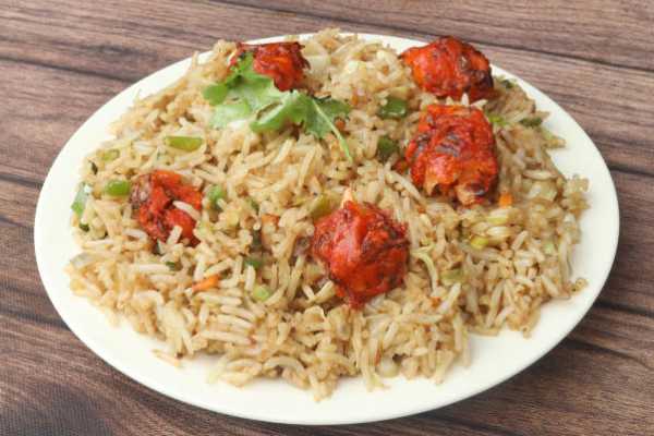 Indo-chinese cuisine fried rice that is hot & spicy with bursting flavors of ginger, garlic, soy sauce& red chilli paste, cooked with boneless chicken, finely chopped cabbage & vegetables