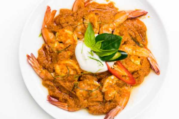 Bawarchi Special Tender Shrimp marinated in aromatic spices, cooked in a bawarchi special sauce with a hint of coconut for a divine taste