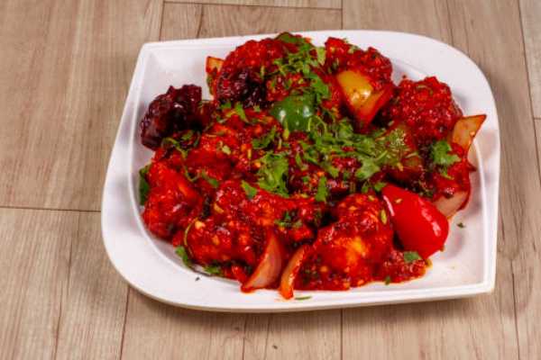 Indian Chinese fusion dish that is hot & spicy with bursting flavors of ginger, garlic, soy sauce & red chilli paste, cooked with Indian cottage cheese cubes
