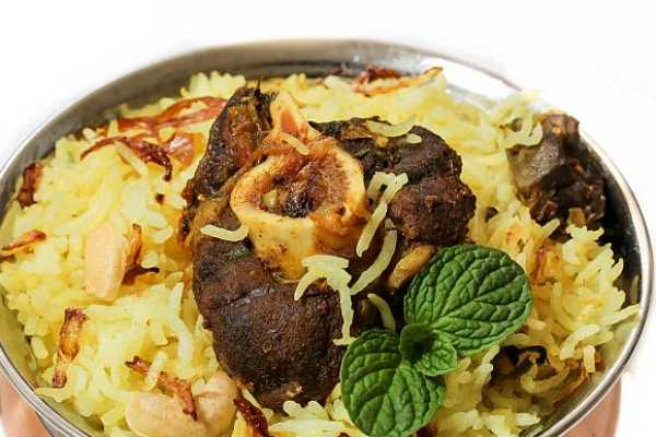 Tender bone in goat cooked to perfection right blend of Spices and ghee