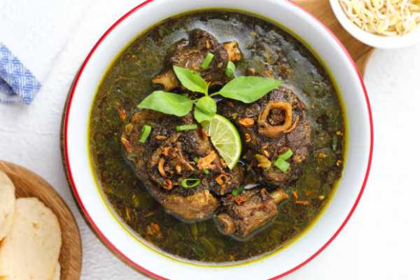 Chef special preparation of south Indian style curry with bone in Goat
