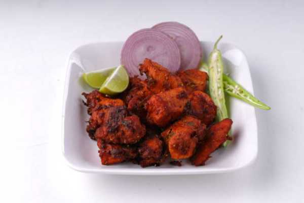 Boneless chicken marinated with spicy sauce and roasted in clay oven to perfection