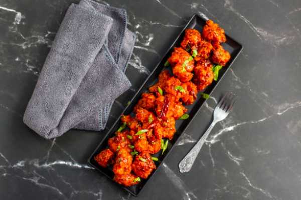 Cauliflower marinated in ginger garlic and fried for an extra crispy taste