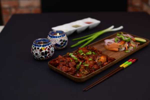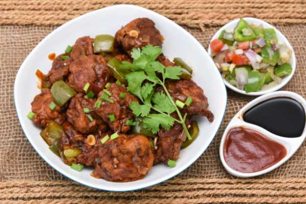 Indo-Chinese style fried chicken sauteed with onions, bell peppers and Chillies