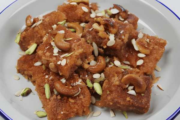 An Indian bread pudding sweet made of fried bread slices soaked in hot milk with spices, including saffron and cardamom
