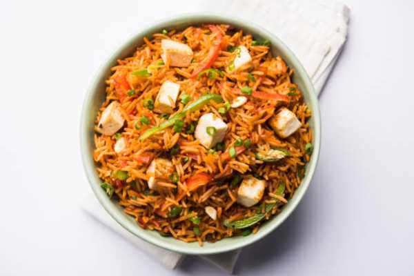 Aromatic Rice stir fried with fine chopped cabbage, carrots, bell pepper and Chicken in spicy schezwan sauce